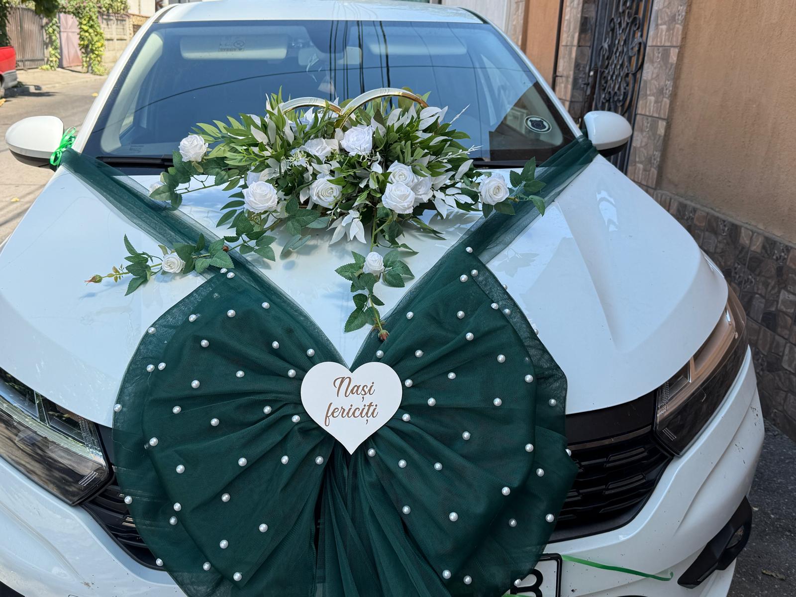 Adaugă un strop de magie și eleganță decorului auto, împărtășind vestea marelui eveniment cu stil și originalitate!Fundă accesorizata cu perle este un accesoriu elegant și deosebit pentru decorarea mașinii de nuntă, realizată 100% handmade, pentru a aduce un plus de stil și rafinament evenimentului tău special. Acest aranjament oferă mașinii un aer festiv și distins, transformând fiecare apariție într-o adevărată declarație. Funda este confecționată din materiale de calitate superioară, cu flori din mătase fină, garantând un aspect natural și sofisticat.