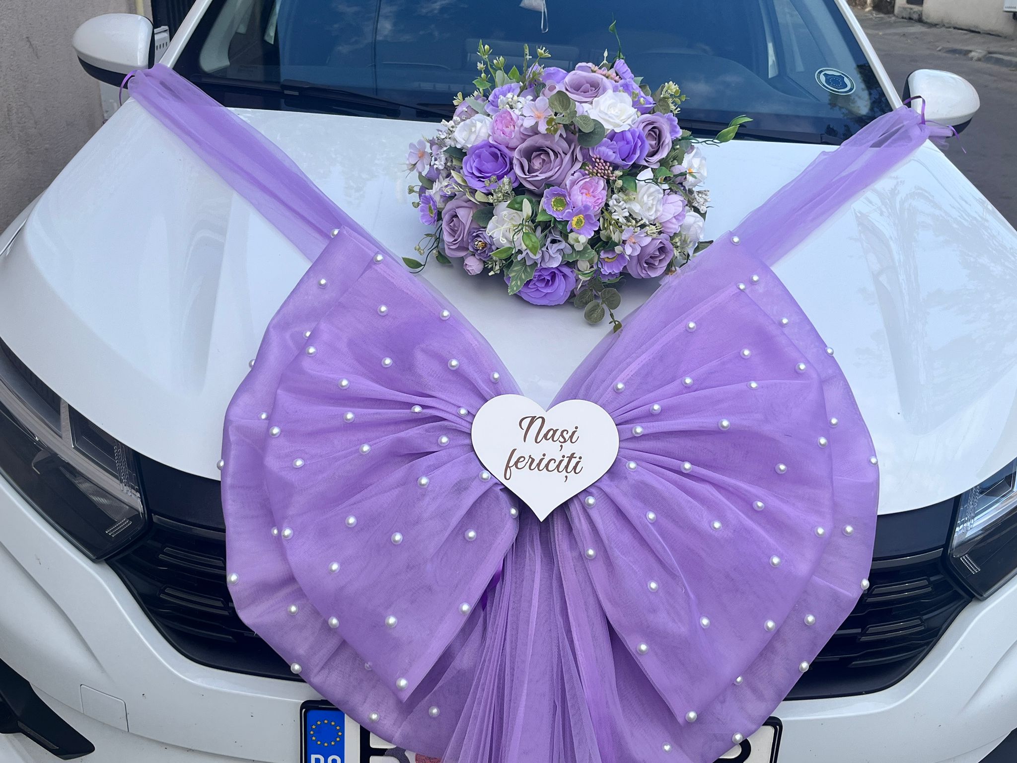 Adaugă un strop de magie și eleganță decorului auto, împărtășind vestea marelui eveniment cu stil și originalitate!Fundă accesorizata cu perle este un accesoriu elegant și deosebit pentru decorarea mașinii de nuntă, realizată 100% handmade, pentru a aduce un plus de stil și rafinament evenimentului tău special. Acest aranjament oferă mașinii un aer festiv și distins, transformând fiecare apariție într-o adevărată declarație. Funda este confecționată din materiale de calitate superioară, cu flori din mătase fină, garantând un aspect natural și sofisticat.