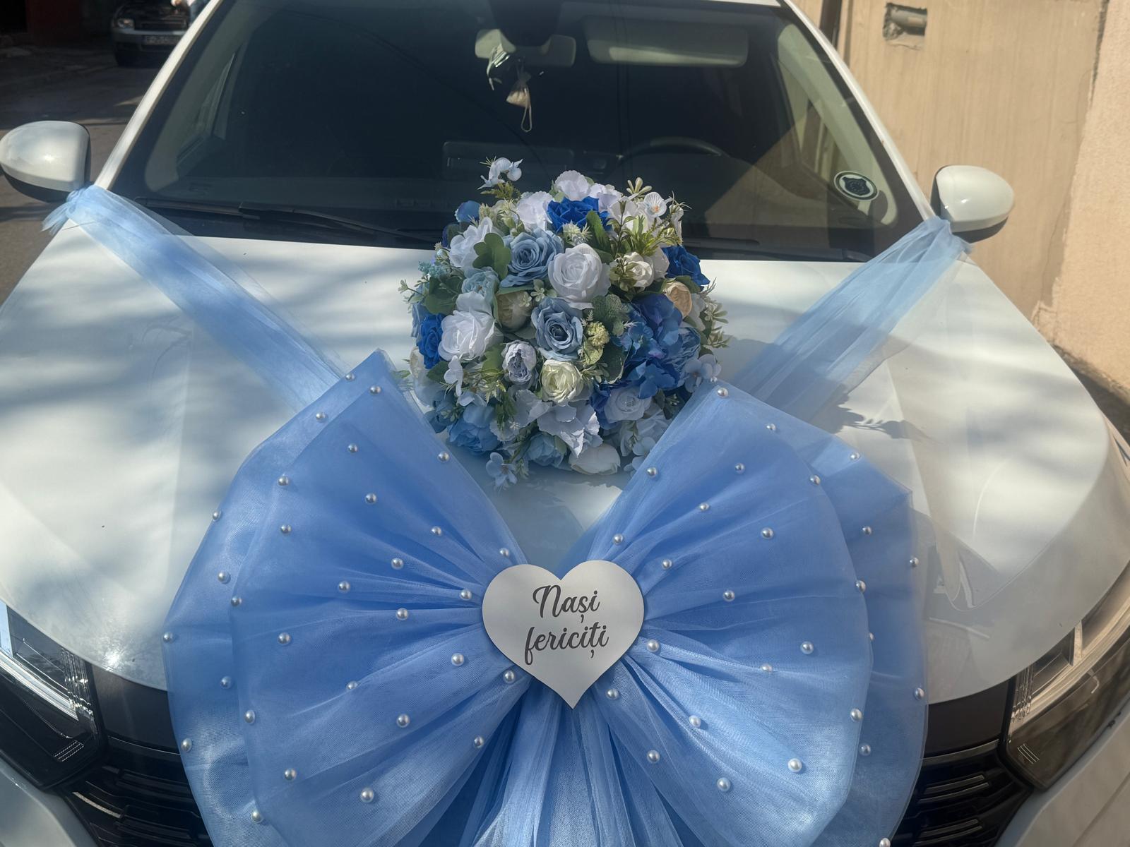 Adaugă un strop de magie și eleganță decorului auto, împărtășind vestea marelui eveniment cu stil și originalitate!Fundă accesorizata cu perle este un accesoriu elegant și deosebit pentru decorarea mașinii de nuntă, realizată 100% handmade, pentru a aduce un plus de stil și rafinament evenimentului tău special. Acest aranjament oferă mașinii un aer festiv și distins, transformând fiecare apariție într-o adevărată declarație. Funda este confecționată din materiale de calitate superioară, cu flori din mătase fină, garantând un aspect natural și sofisticat.
