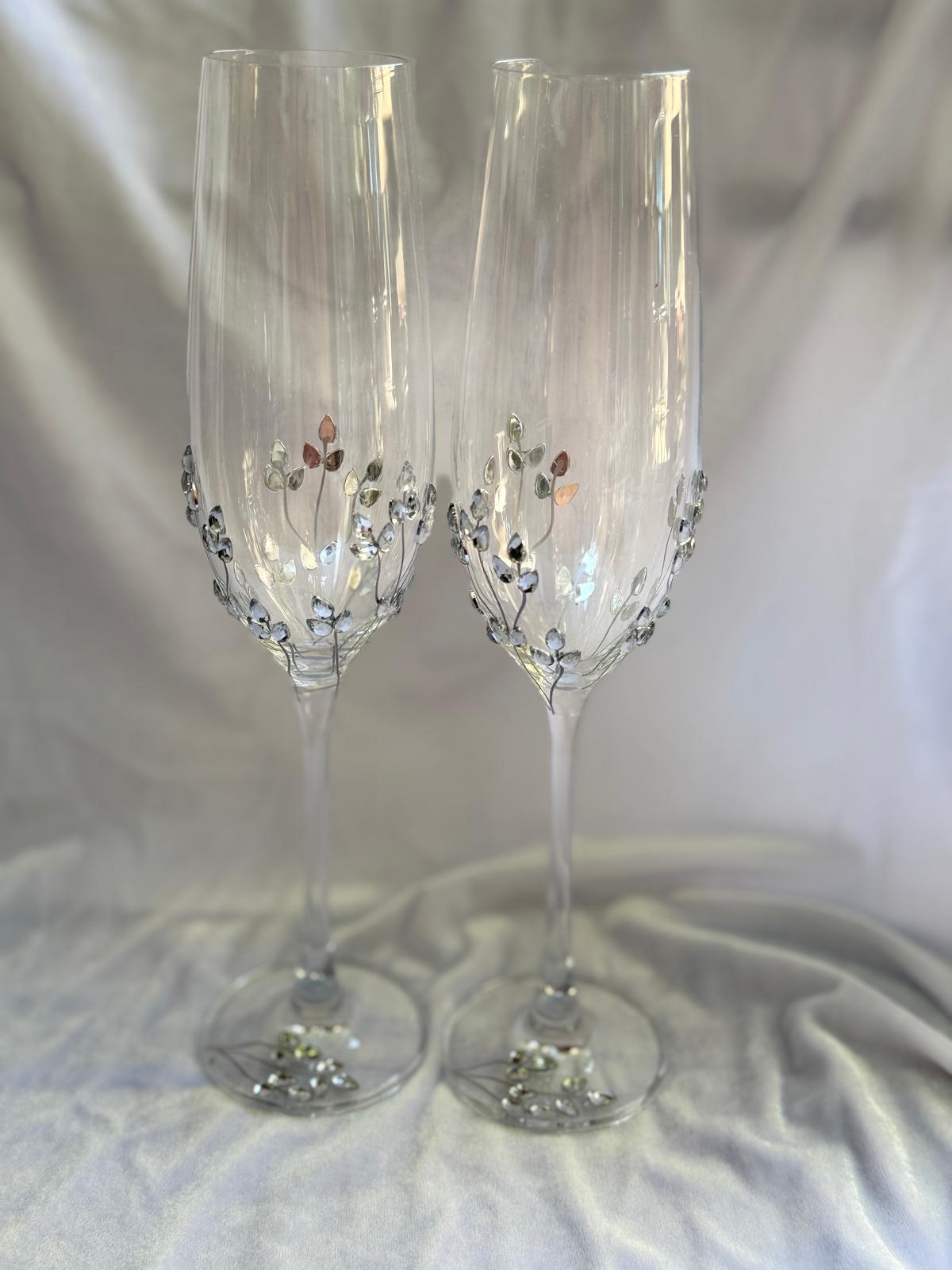 Descoperă o colecție exclusivistă de pahare de șampanie,accesorizate cu pietre, concepută pentru a adăuga un plus de eleganță și strălucire evenimentului tău special. Realizate din materiale premium, aceste pahare îmbină un design sofisticat cu detalii fine, fiind alegerea perfectă pentru toast-uri memorabile la nunți și alte evenimente de lux. Fiecare pahar emană rafinament, transformând fiecare moment într-o sărbătoare a stilului și a eleganței, contribuind la crearea unei atmosfere inconfundabile în ziua cea mare !