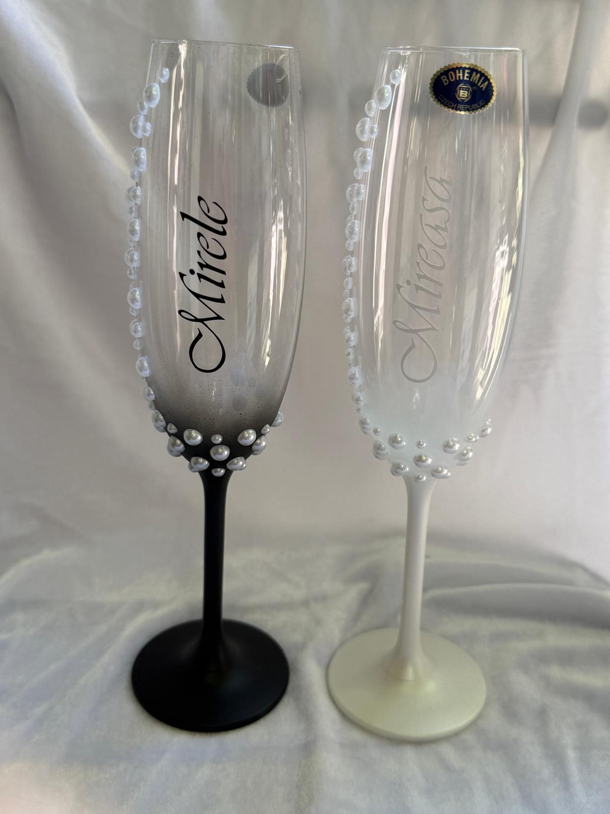 Descoperă paharele dintr o colecție exclusivistă de pahare de șampanie accesorizate cu perle diafane concepută pentru a adăuga un plus de eleganță și strălucire evenimentului tău special. Realizate din materiale premium, aceste pahare îmbină un design sofisticat cu detalii fine, fiind alegerea perfectă pentru toast-uri memorabile la nunți și alte evenimente de lux. Fiecare pahar emană rafinament, transformând fiecare moment într-o sărbătoare a stilului și a eleganței, contribuind la crearea unei atmosfere inconfundabile în ziua cea mare !
