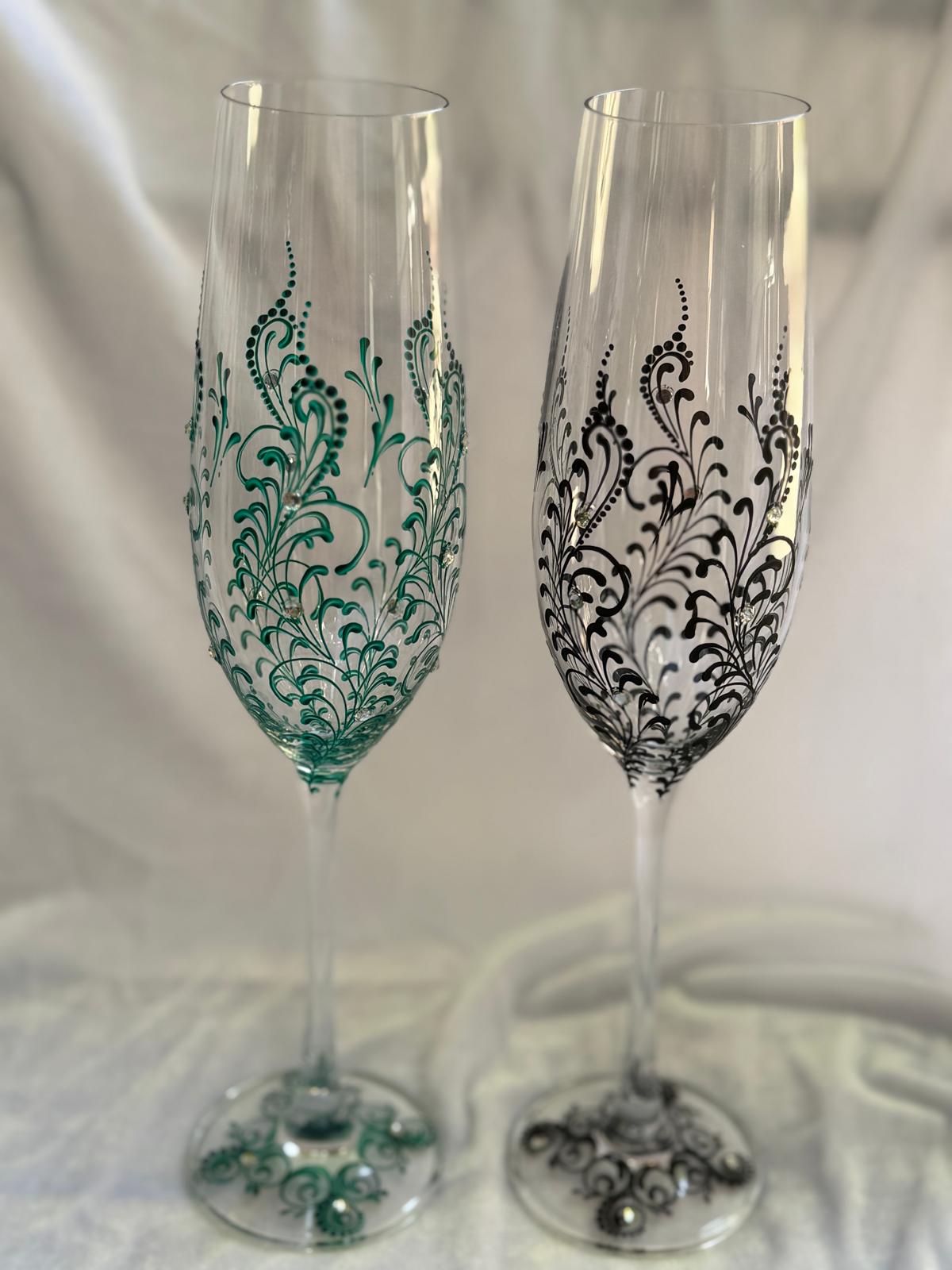 Descoperă paharele dintr o colecție exclusivistă de pahare de șampanie pictate manual, concepută pentru a adăuga un plus de eleganță și strălucire evenimentului tău special. Realizate din materiale premium, aceste pahare îmbină un design sofisticat cu detalii fine, fiind alegerea perfectă pentru toast-uri memorabile la nunți și alte evenimente de lux. Fiecare pahar emană rafinament, transformând fiecare moment într-o sărbătoare a stilului și a eleganței, contribuind la crearea unei atmosfere inconfundabile în ziua cea mare !