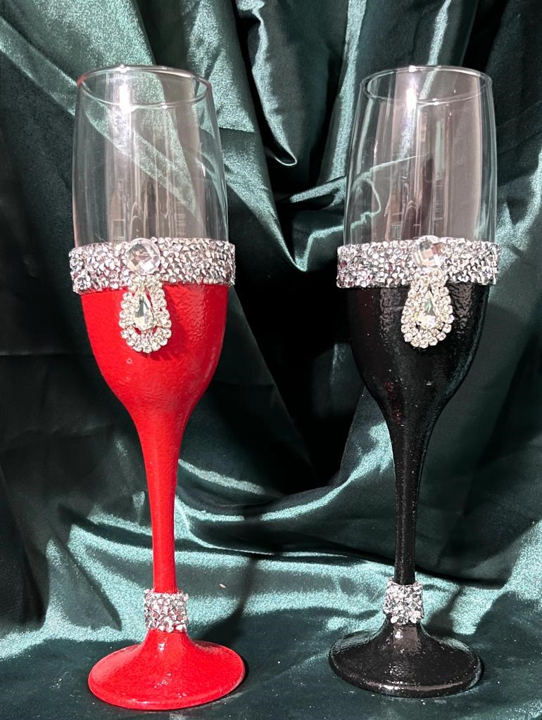 Descoperă paharele de șampanie Ever, accesoriate cu pietre și cristale de înaltă calitate, concepute pentru a aduce un plus de eleganță și strălucire evenimentului tău special. Aceste pahare sofisticate transformă fiecare toast într-o experiență memorabilă, completând decorul unei nunți sau al unui eveniment exclusivist cu un stil unic și rafinat. Fiecare detaliu al designului evidențiază atenția pentru calitate și originalitate, făcând din paharele de șampanie Ever alegerea perfectă pentru a marca momente pline de semnificație și a adăuga o notă personală zilei tale de neuitat.