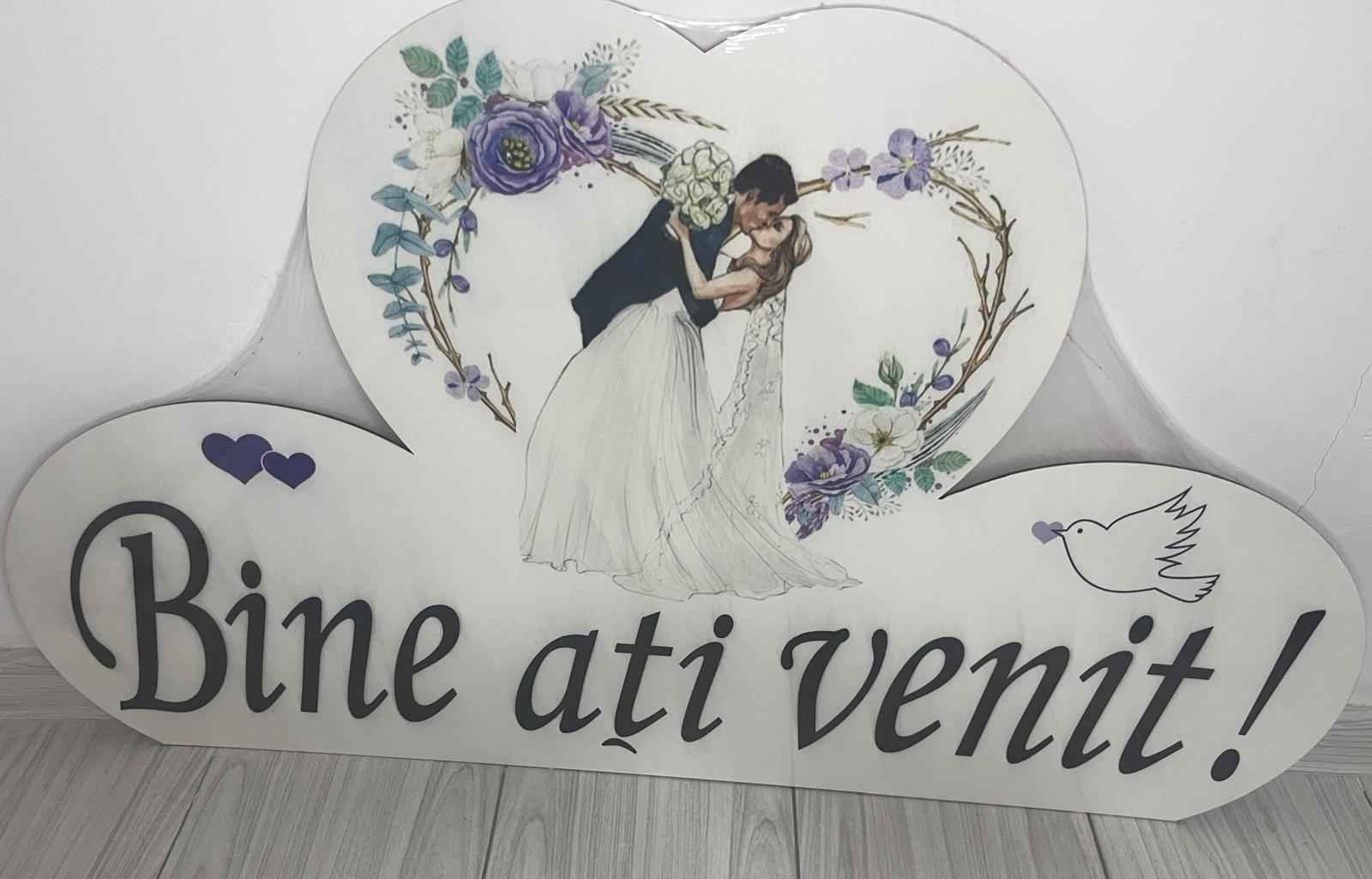 Pancarta cu urarea de Bine ați venit se amplaseaza la intrarea în sala pentru a face o primire calduroasa invitatilor și evidentieaza evenimentul intr-un mod placut si elegant.