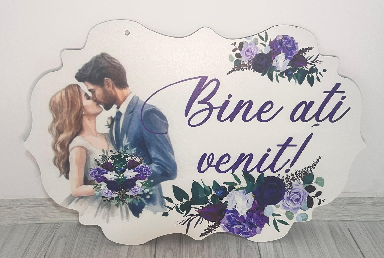 Pancarta cu urarea de Bine ați venit se amplaseaza la intrarea în sala pentru a face o primire calduroasa invitatilor și evidentieaza evenimentul intr-un mod placut si elegant.